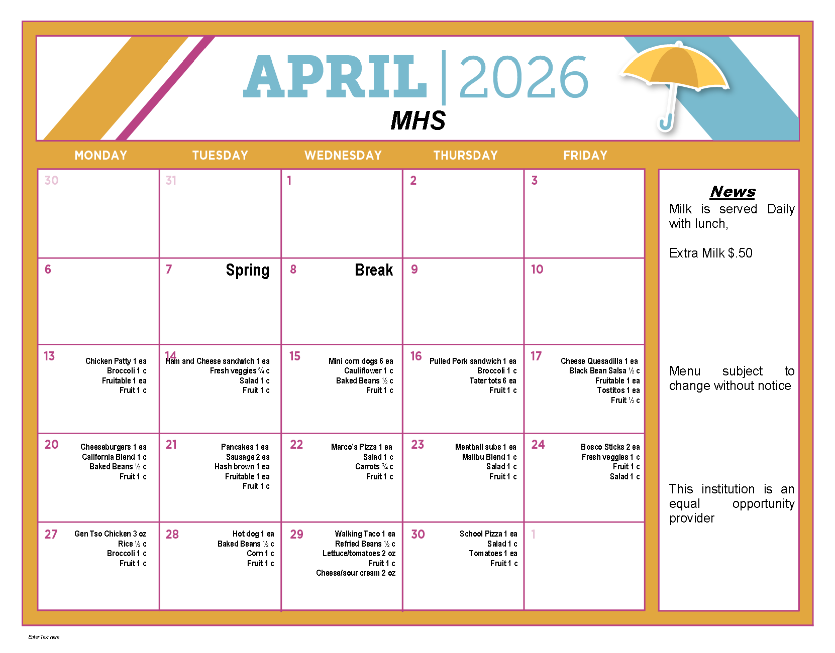 The Marian Cafeteria Program serves delicious and nutritious menu items every day to students. The program director works diligently to organize creative menus that satisfy a broad spectrum of palettes. Students with food allergies should speak with the director about options that may work within their dietary restrictions.